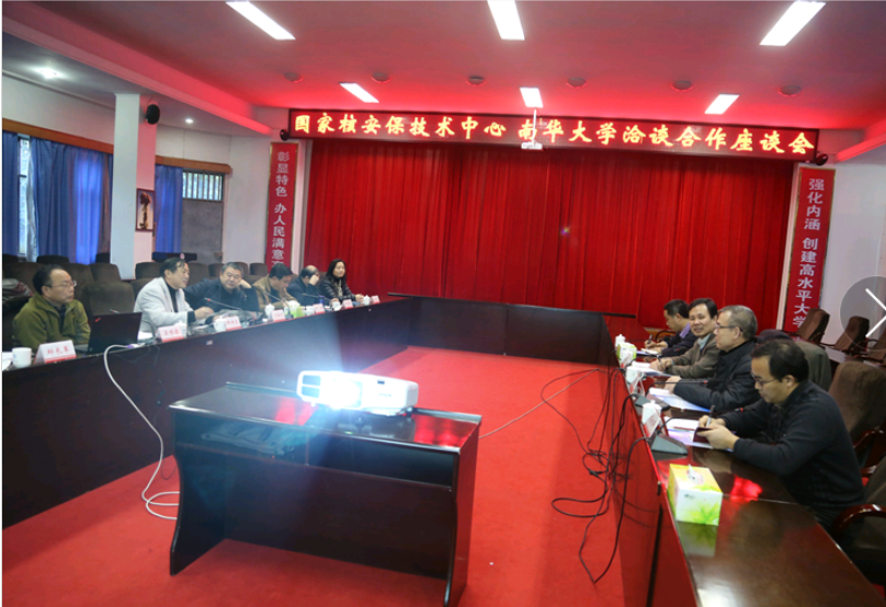 1月21日,国家核安保技术中心党委书记王军、主任助理许振华、技术研发处处长伍朝晖、综合处副处长周精辟 等一行4人来校访问,并与学校洽谈关于核安保领域战略合作事宜。学校党委书记邹树梁、校长文格波、副校长吴移谋等在西苑一办公楼视频会议室与王军书记一行进行了座谈。座谈会由邹树梁主持。
