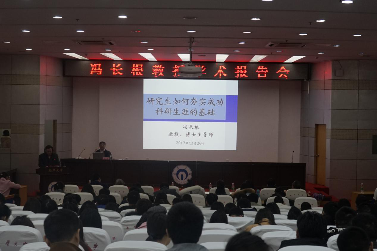 2017年12月28日下午三点,北京理工大学博士生导师冯长根教授受邀到南华大学讲学,作了题为“研究生如何夯实成功科研生涯的基础以及青年教师如何当好研究生导师”的讲座。核设施应急安全作业技术与装备湖南省重点实验室主任邹树梁教授主持讲座,环境与安全工程学院、管理学院部分导师以及研究生200余人聆听了讲座。